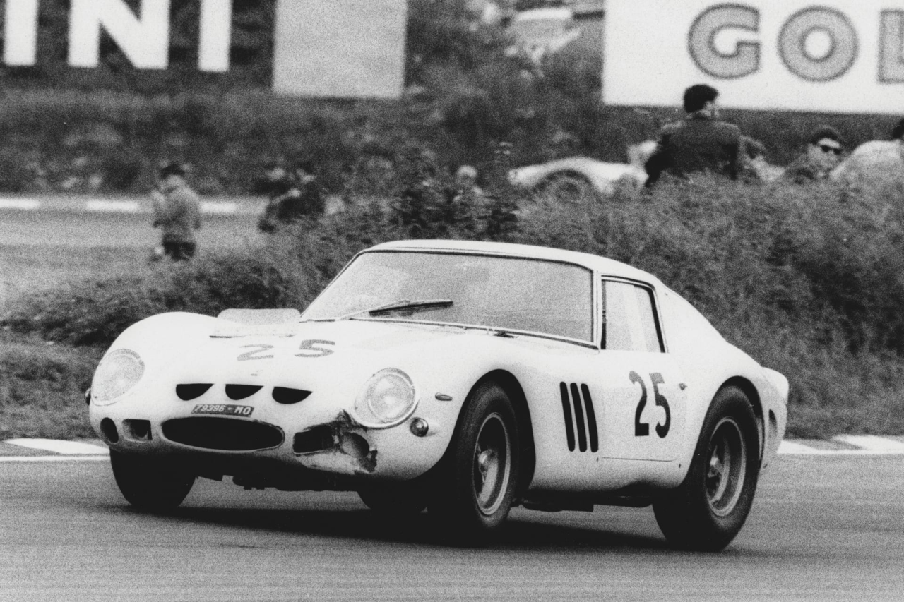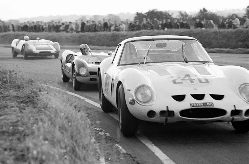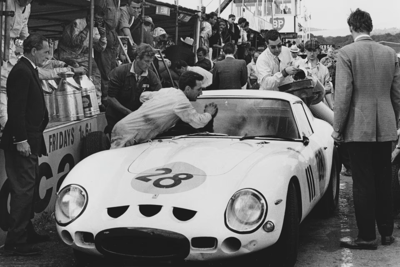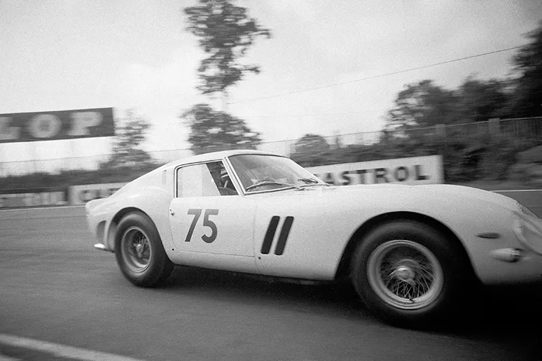 它的赛场履历,更是堪称“封神之路”。服役期间,这台纯白250 GTO包揽多场赛事组别冠军,多次斩获亚军,征战英国及欧洲各大顶级赛道,由格雷厄姆·希尔、杰克·西尔斯、迈克·帕克斯等传奇车手轮番驾驭,每一位驾驶者都是赛车史上响当当的人物,为其履历添上浓墨重彩的一笔。1962与1963年,它连续两年在古德伍德RAC旅游杯赛拿下全场亚军,这场赛事隶属FIA GT锦标赛,直接助力法拉利拿下当年世界冠军,含金量拉满。