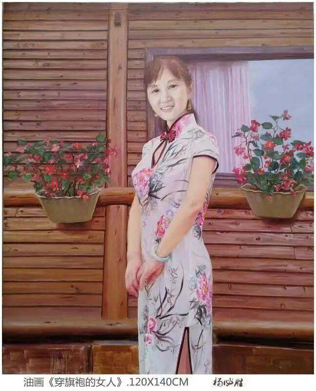 《穿旗袍的女人》.120X140cm 油画
