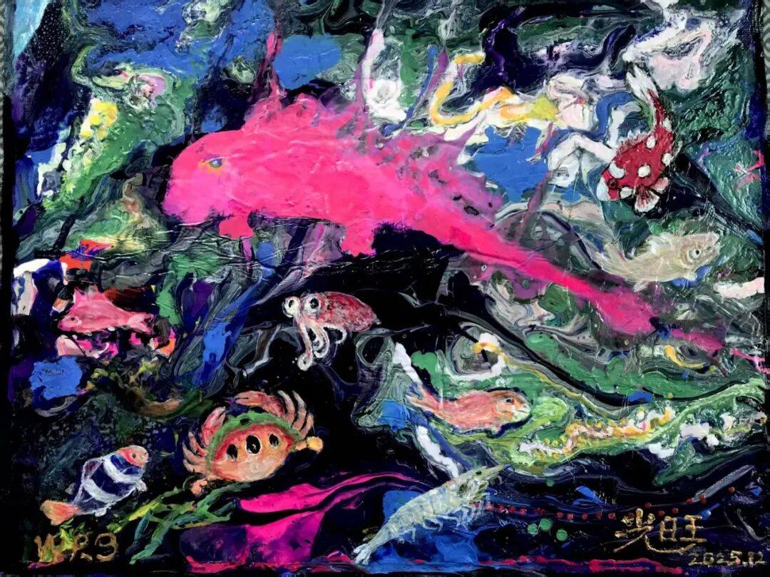 《海洋里的鱼类》夜光画 56cm×48cm