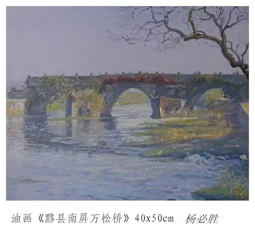 油画《黟县南屏万松桥》40x50cm