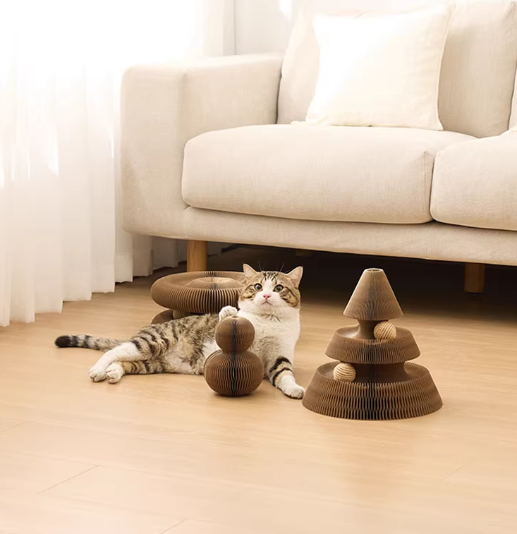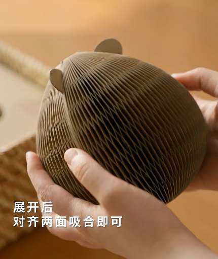 此次推出的纸制风琴宠物玩具,延续了品牌一贯的设计逻辑,以极简形态回归宠物玩耍的本质。可自由伸缩的风琴结构,在宠物扑抓、啃咬时会呈现出不规则的形态变化,模拟小型猎物逃窜的动态,精准触发捕猎本能;原生纸材的纹理与轻脆声响,贴合宠物对自然材质的敏感感知,啃咬时的适度阻力既能满足磨牙需求,又不会造成牙齿损伤。
