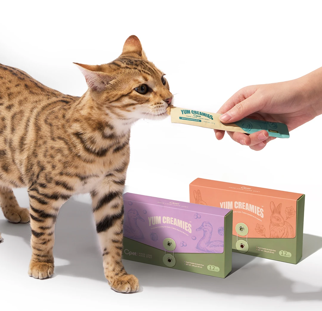工艺层面,产品采用3000转高速斩拌与酶解工艺。前者将肉纤维彻底斩断肉纤维并乳化,使肉糜颗粒细度达到微米级,尤其适合幼猫、老年猫或口腔敏感的猫咪;后者则将致敏性大分子蛋白,分解为低致敏性的小分子肽,减少皮肤瘙痒、呕吐等过敏反应,适合有食物过敏史的猫咪长期食用。