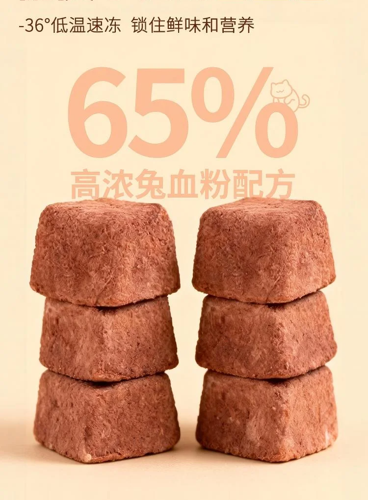 贫血不是“小毛病”,但传统补血方式,往往存在药物补铁刺激肠胃,动物肝脏喂食会引发维生素A中毒等“隐形负担”。针对宠物贫血的预防和轻度改善,以血红素铁为核心的日常食补是更安全、有效的选择,比如近年来逐渐流行的兔血冻干零食。