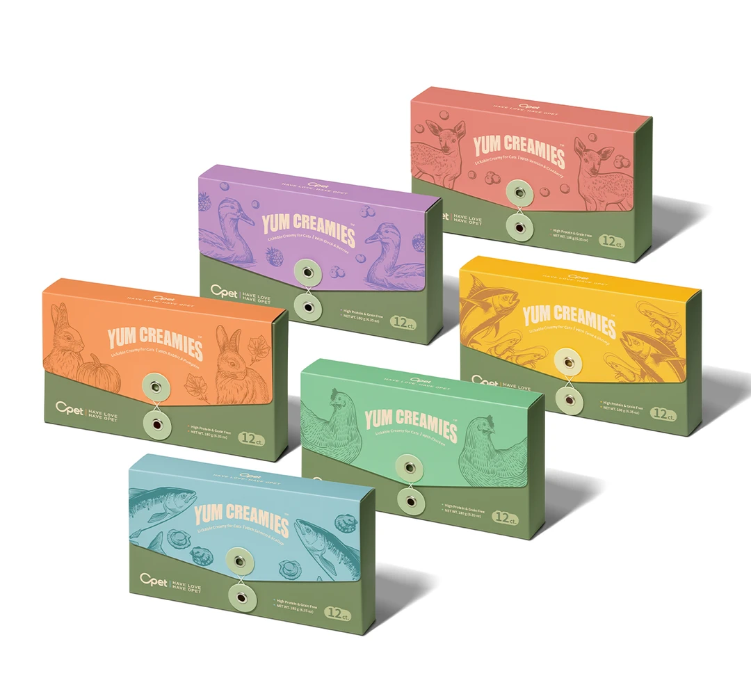 目前Opet这款猫条共推出的六种口味,除了经典多汁鸡以65%鲜鸡胸肉与5%冻鸡肝为核心外,其他五款均采用双肉源配方: