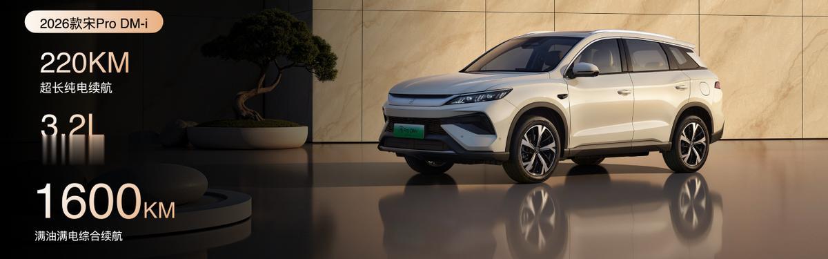 作为宋家族的旗舰SUV,2026款宋Pro DM-i在续航、智能与舒适上全面升级,让每一次出行都更从容自在。配备26.6度大电池后,纯电续航提升至220公里,足够满足一周通勤或周末出行,让用户体验到真正的纯电自由。即便长途驾车,结合第五代DM技术优化后的超低油耗,也能实现通勤纯电、长途一箱油的轻松出行模式,1600公里的综合续航为家庭旅行提供了充足的底气。