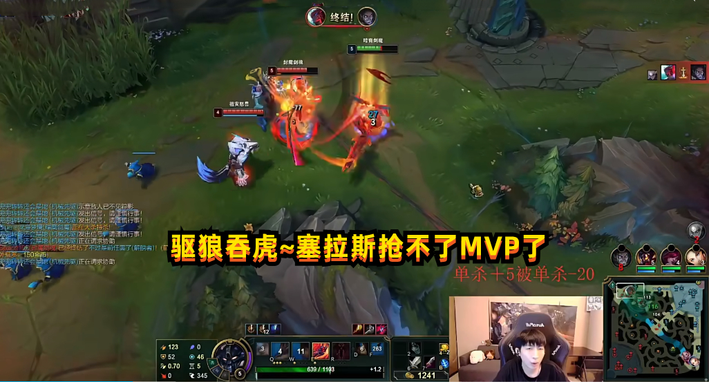 小超梦所使用的套路,除了在BP中提前进行设计,通过观察队友和对手的选择,诱导对面的上单玩家选一些自己比较熟悉的英雄之外,他还会在己方大顺风时,观察一下自家哪位队友的KDA比自己高,然后在团战或者对线期,想办法用最合理的方式,让队友被终结一次,提高自己获得MVP的几率,美其名曰:驱狼吞虎。