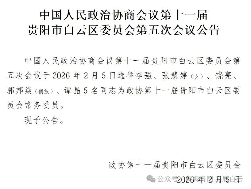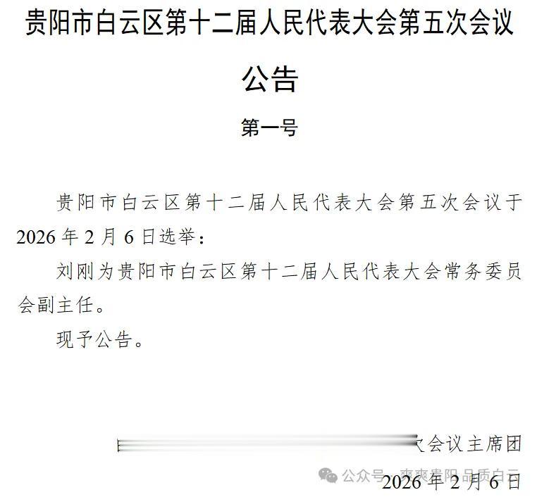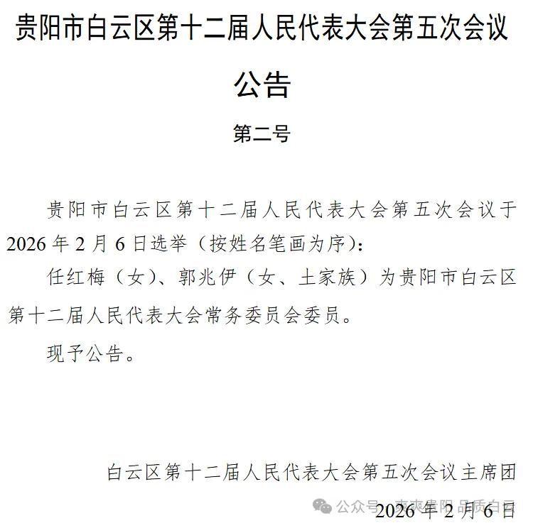 贵阳市南明区第十八届人民代表大会第六次会议于2026年2月6日选举: