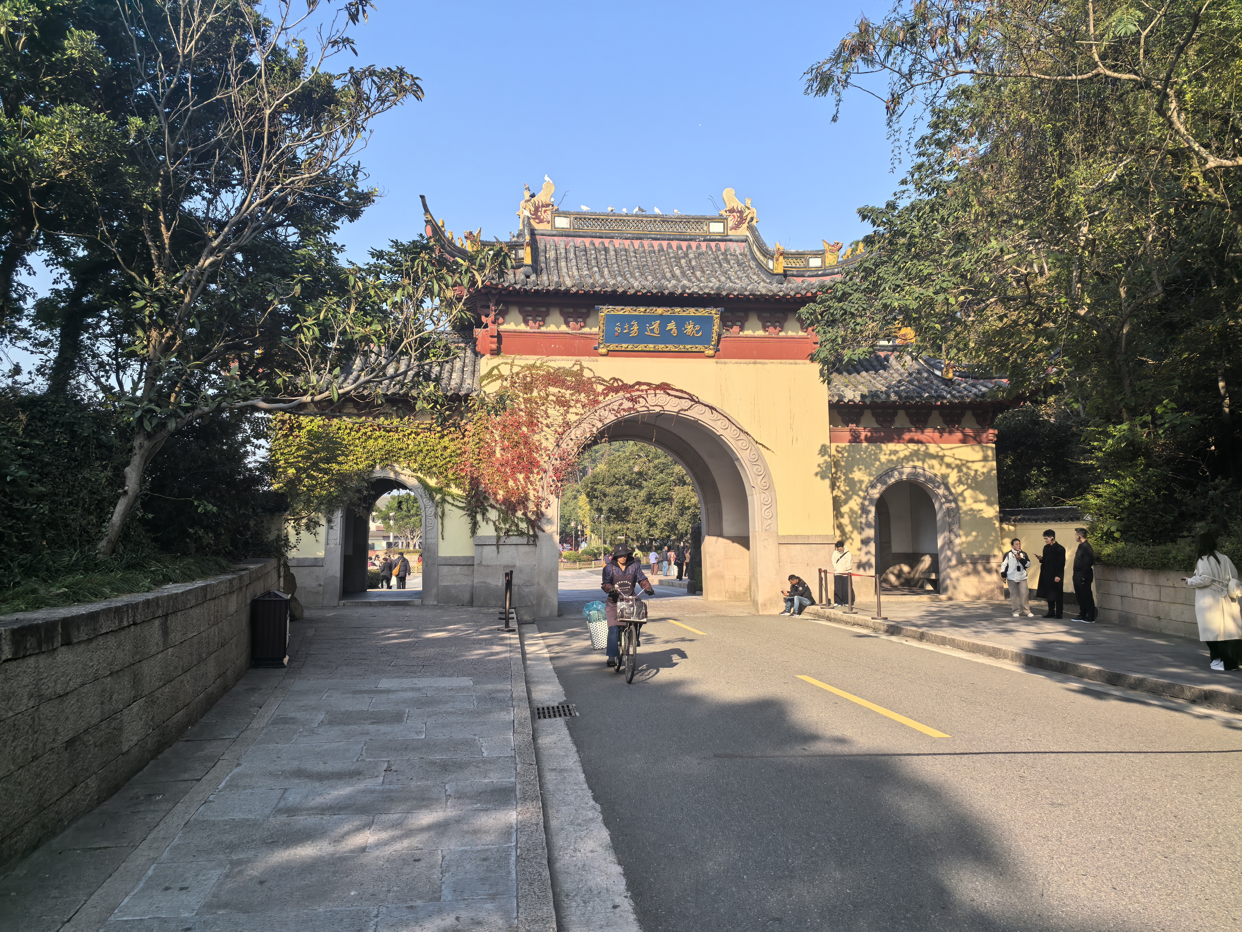 离开码头一路导航到普济寺,顺路看了几个景点,还是身体有点疲劳,沿着山道慢慢走。山路是石头铺就,旁边是高大树木,阵阵鸟鸣声,人不多,非常幽静。