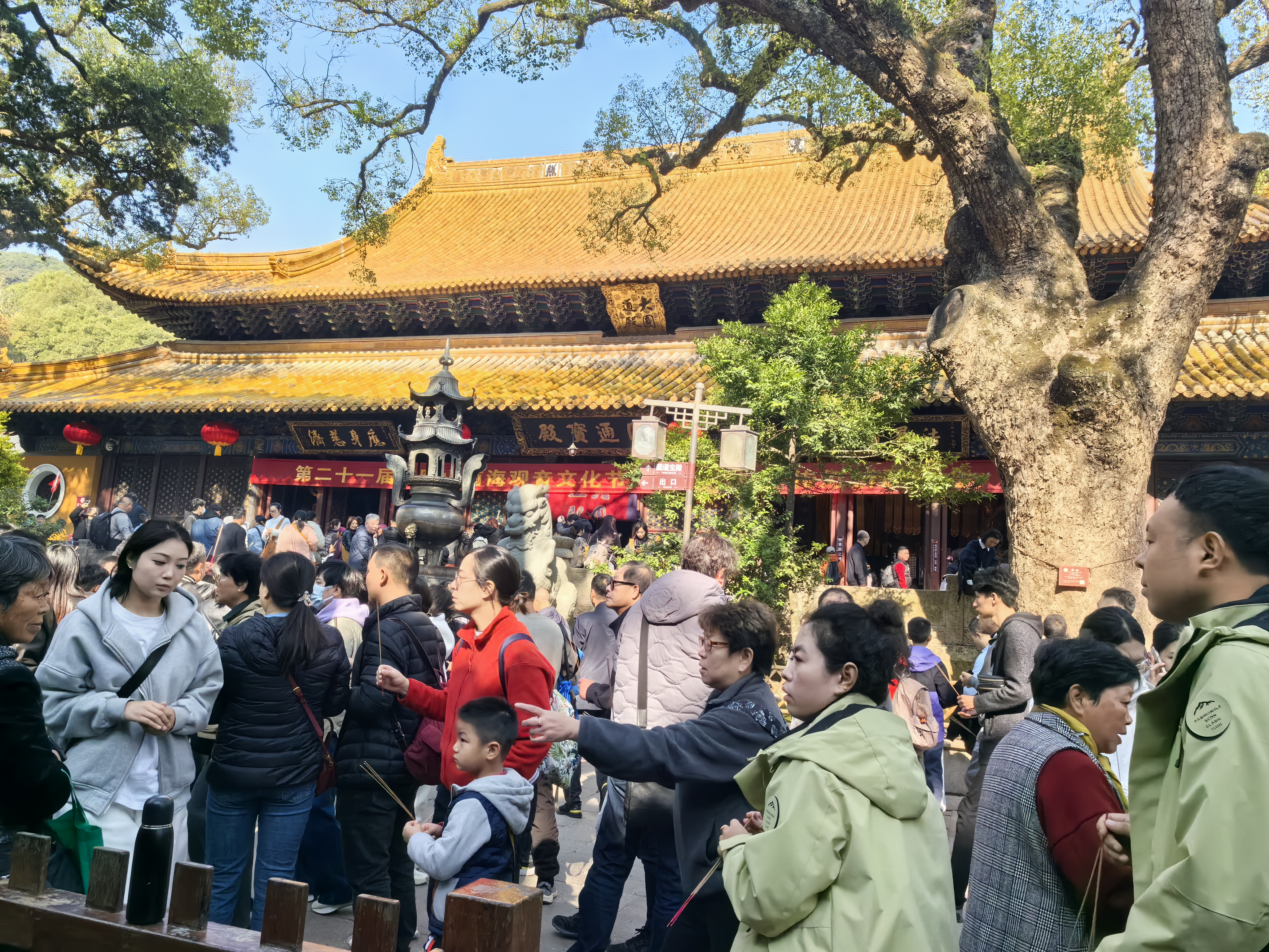 进入普济寺,人是相当多,说摩肩擦踵也不为过。大喇叭里喊着不让游客带自己的香去烧,让游客把自己的大香放在寄存架上。寺院里会给每一个游客免费发三支小香,可能是怕污染环境,用赠送的小香代替游客的大香,减少排放,很多游客从沿途摊贩那里买了大香烛。浙江这边寺庙都没有捐款二维码,在江西安徽的寺庙里都有二维码,游客可以扫二维码捐款。这里香客只能使用小额现金捐款,估计江浙一带的寺庙都比较富有,不在乎游客的香火钱。我进到大殿里面祷告了一番,把家人都祝福了一下,但是没地方捐款,我也没有零钱现金,感觉有点不放心,怕人家收不到钱不办事啊。