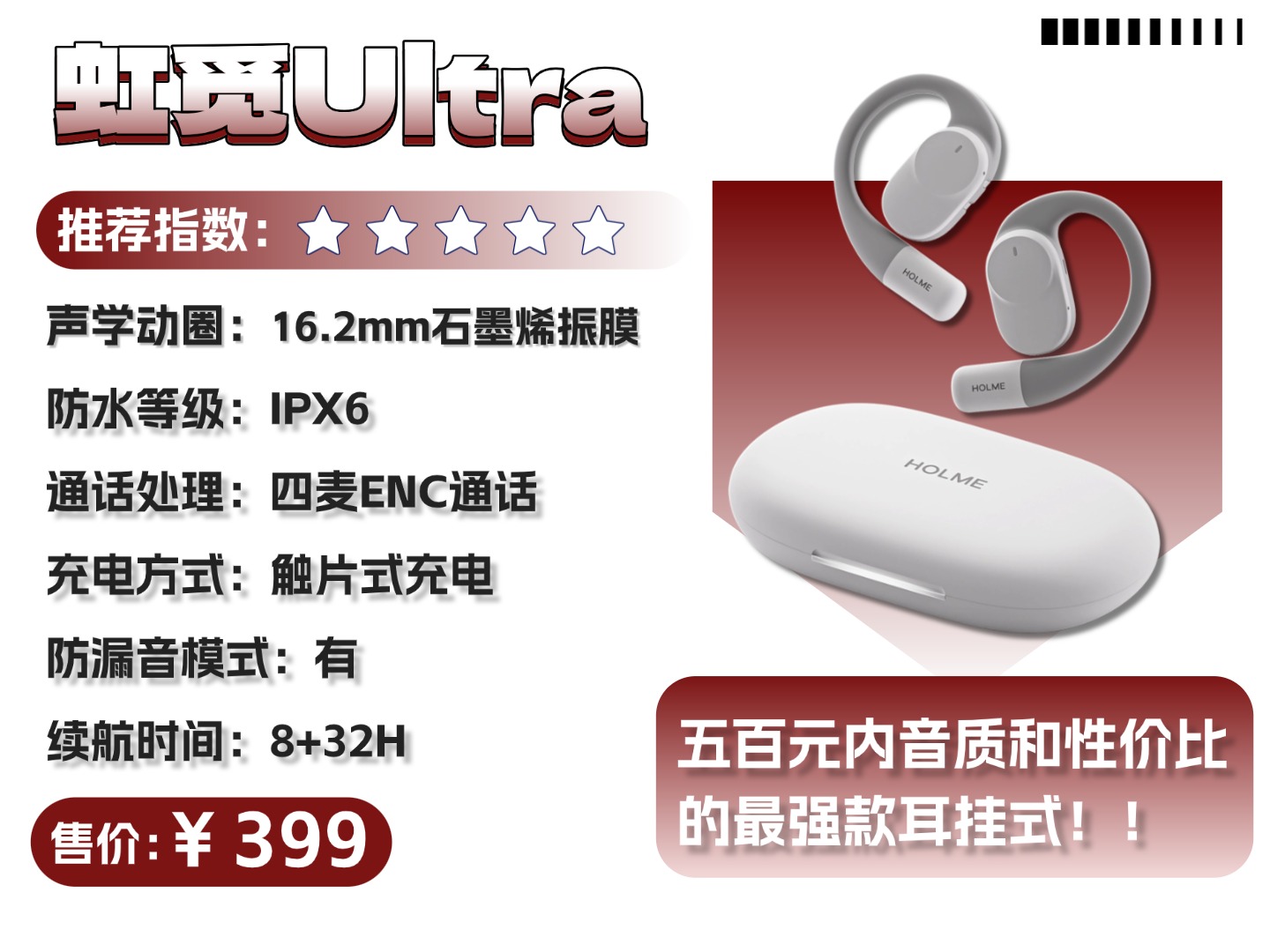 五款高适配开放式耳机推荐,按需选不踩坑虹觅HOLME Ultra价格:399 元
