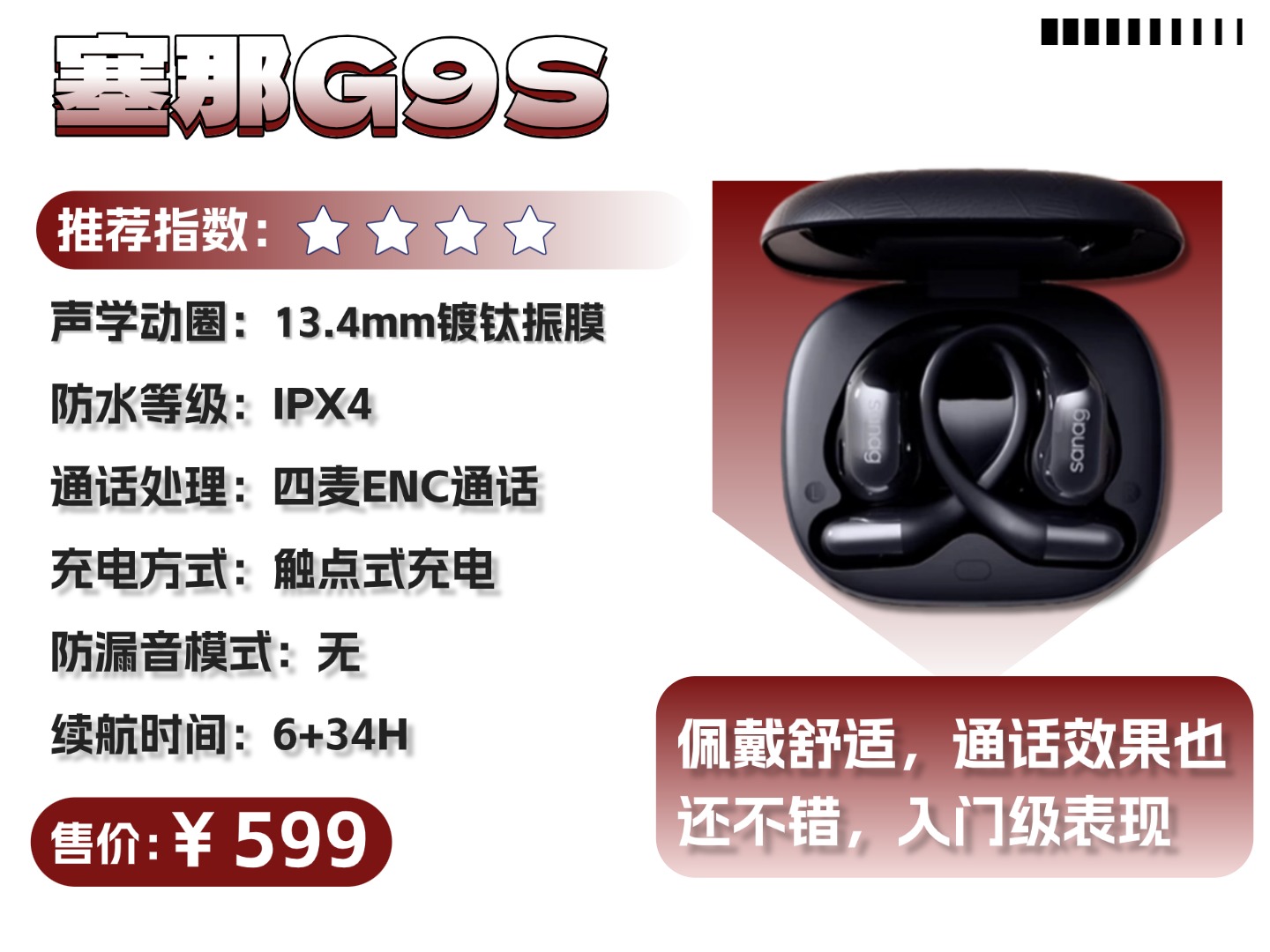 塞那G9S售价:599 元推荐程度:★★★★