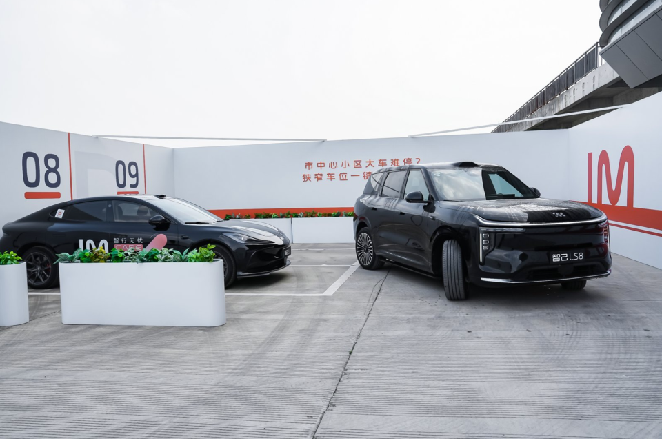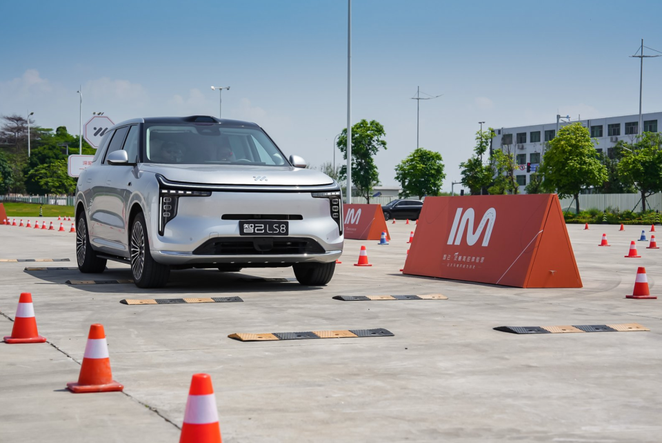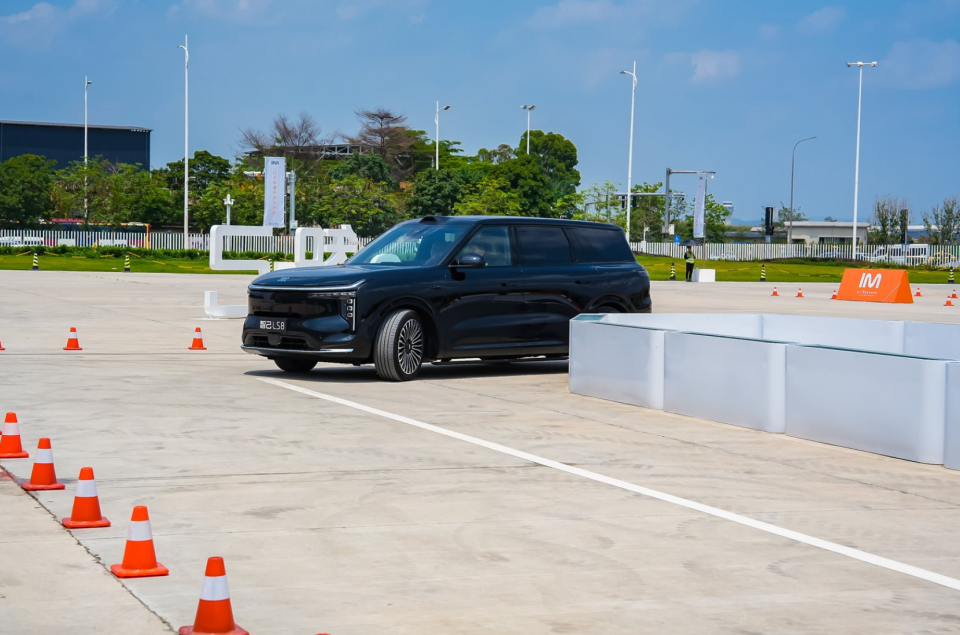 智己LS8全系标配了灵蜥数字底盘3.0。但真正让我惊呼的是它的转向系统:同级首发的全线控转向,加上同级唯一全系标配的双向24°智慧四轮转向。这两个东西叠在一起的效果是什么?一台车长超5米的旗舰SUV,最小转弯半径只有4.85米——比飞度、Polo这类A0级小车还小!低速时方向盘半圈就能打满,在模拟的魔鬼停车场、螺旋地库、窄路掉头这些场景里,一把过、不犹豫。那一刻我甚至忘了自己开的是个5米多长的大家伙。