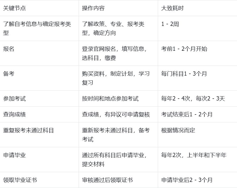 三、自考从报名到拿证的完整流程及关键节点和耗时第一步:了解自考信息与确定报考类型操作:考生需要了解自考的基本政策、考试专业、报考类型等信息,结合自身情况确定报考类型和想要报考的专业。