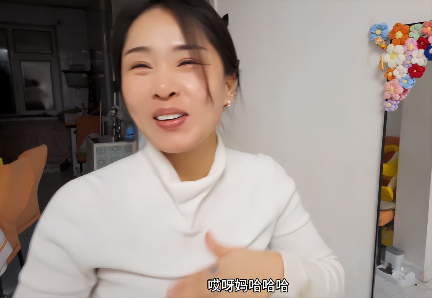 而女子家中厨房的灯已经关了,只有卧室有灯,是女子的婆婆在哄孩子睡觉。
