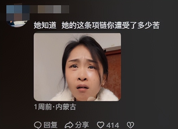 有网友表示,她知道,她的这条项链你遭受了多少苦