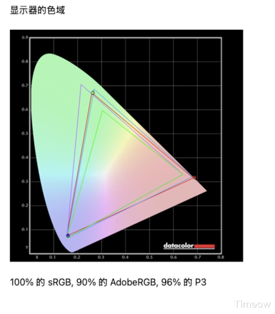 我自己通过红蜘蛛测,数据是100%的sRGB和96%的P3,对比官方数值,P10反向虚标,挺好!这个数据也达到它作为一台办公设计用显示器应有的表现,游戏娱乐乃至办公创作都没啥短板,甚至在院线级影视流程中应对一下剪辑也完全OK。