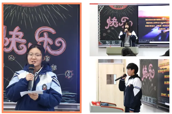 每班推选出的2名班级代表站上讲台,围绕“我的快乐与远方”这一主题,分享他们的真实故事、具体快乐与积极期待。在语文老师的悉心指导下,同学们的演讲内容充实而生动,短短5分钟里,有笑声,有思考,有共鸣,更有温暖。