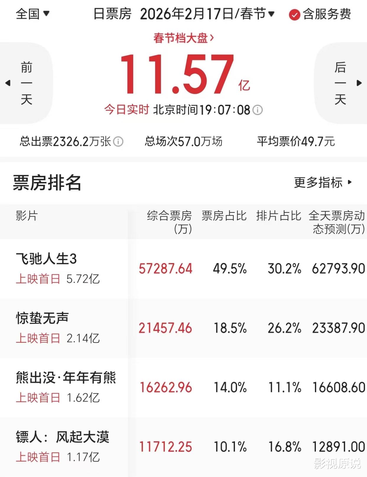 首日票房成绩遥遥领先,观众们的口碑也非常好,如此《飞驰人生3》在档期内,很可能也会像去年的《哪吒2》一样,连续多天实现逆跌。