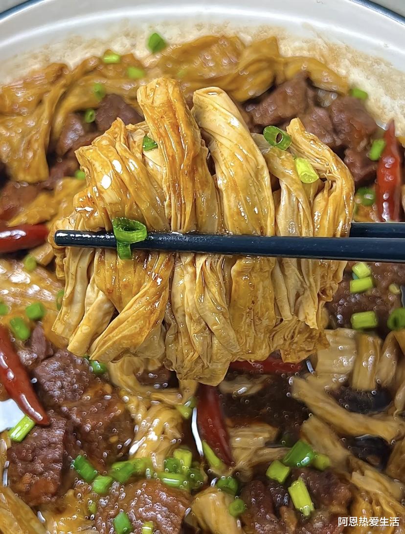 牛肉的豪横撞上腐竹的温柔,在砂锅里谈了一场轰轰烈烈的恋爱。