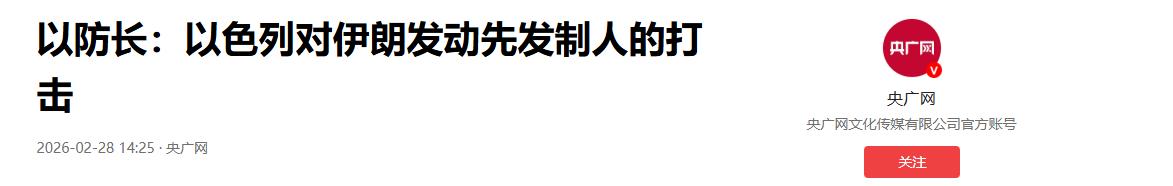 以防长:以色列对伊朗发动先发制人的打击——2026-02-28 14:25·央广网