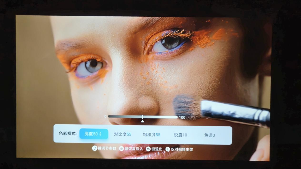 哈趣H3 Ultra和哈趣H3 UltraMAX的亮度均为1000CVIA流明,对比度都是3200:1。在实际使用中,这样的亮度和对比度表现还是比较出色的。在全黑的环境下,画面的黑色部分深邃浓郁,亮部色彩鲜艳夺目,比如观看色彩绚丽的电影时,各种生物和壮丽景色都能被生动地呈现出来,细节满满,色彩过渡也非常自然,给人很强的视觉冲击力。