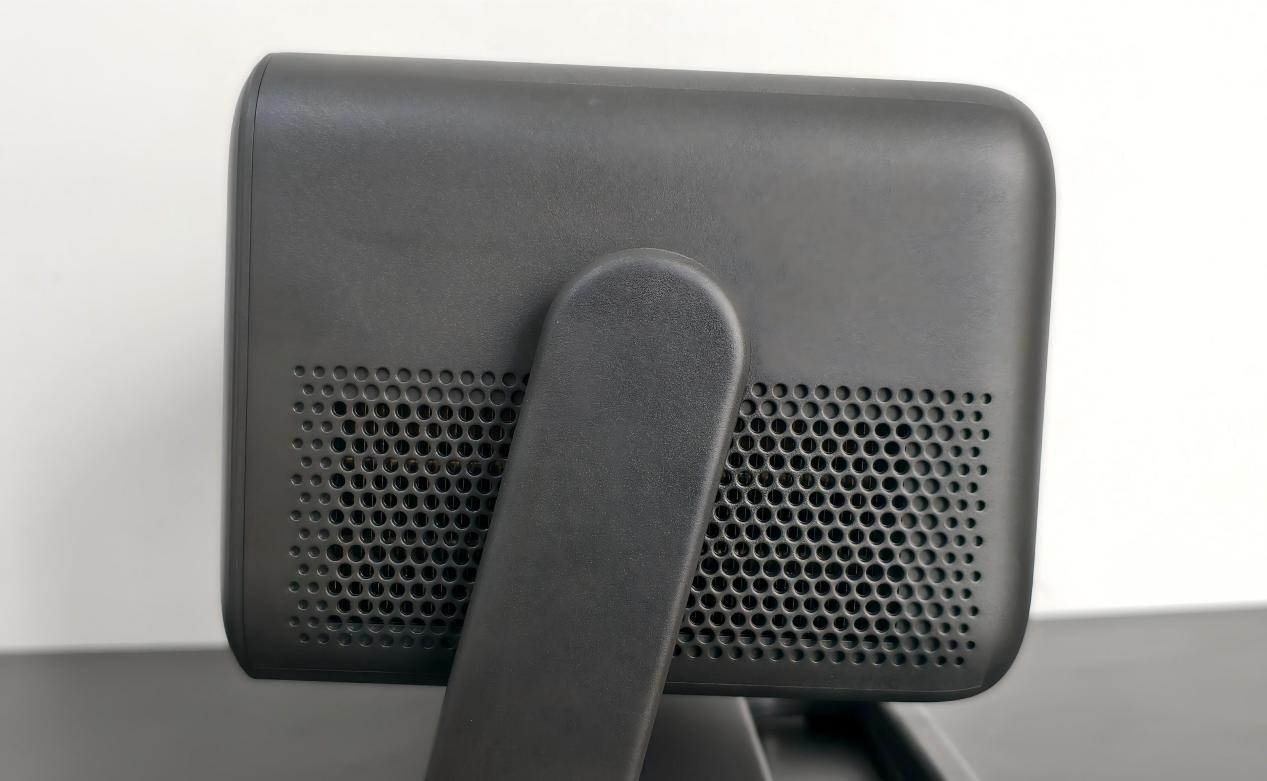 机身背面上方有密集的散热孔,底部是各种接口,从左到右依次是电源按钮、HDMI2.1接口、两个USB 2.0接口和一个3.5mm音频接口,足够满足日常各种设备的连接需求。