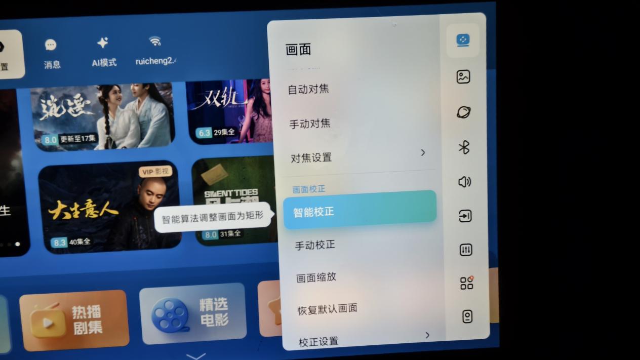 哈趣H3 Ultra和哈趣H3 Ultra MAX都支持自动对焦和校正功能,使用起来非常便捷。打开投影仪后就会迅速开启自动对焦功能,不一会儿,画面就变得清晰锐利起来。在进行梯形校正时,即使我将投影仪摆放得有些倾斜,它也能通过机身右侧的传感器摄像头,快速识别画面的倾斜角度,自动进行梯形校正,短短几秒钟,原本倾斜的画面就被调整得方方正正,整个过程完全不需要我手动操作,非常智能。