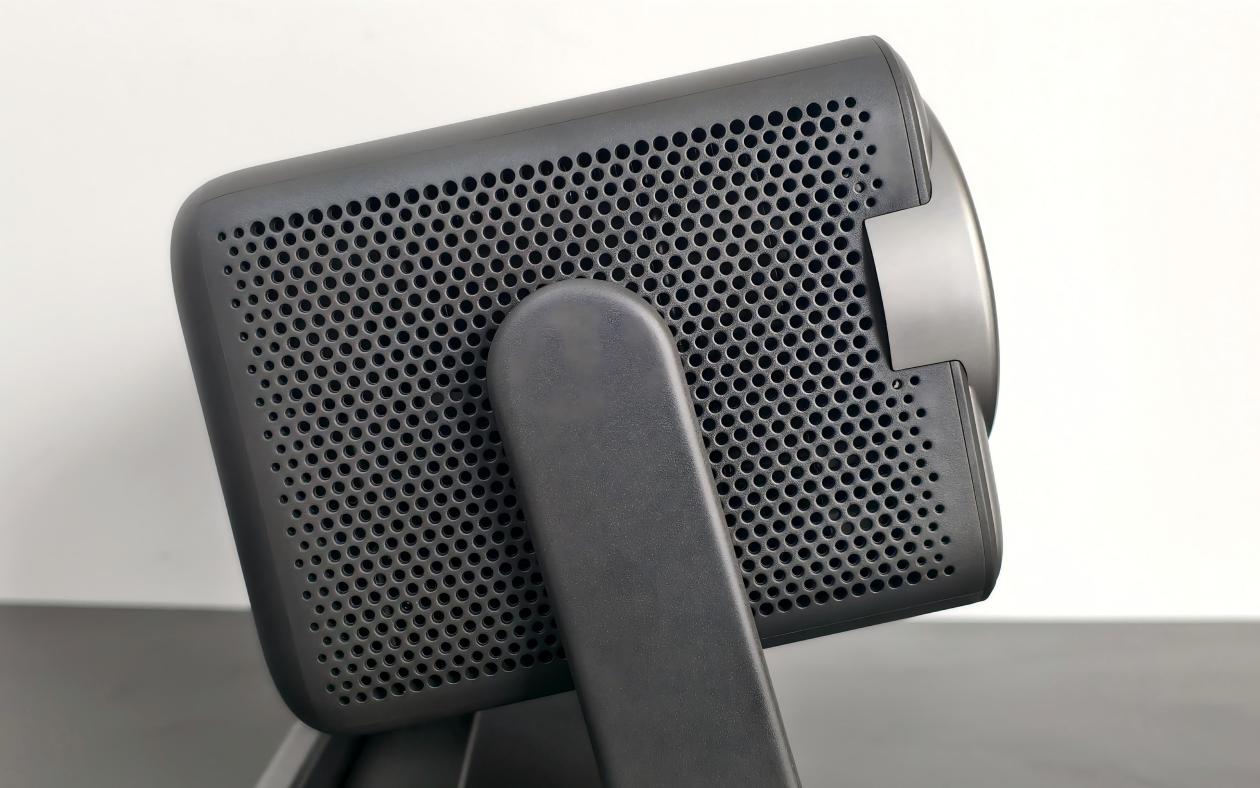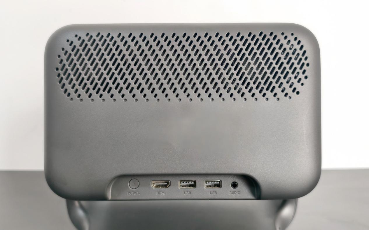 左侧外壳上整面都是散热孔,右侧则做了半面散热孔,除了能保证投影仪在长时间使用过程中的散热需求外,也分别充当扬声器的开孔。