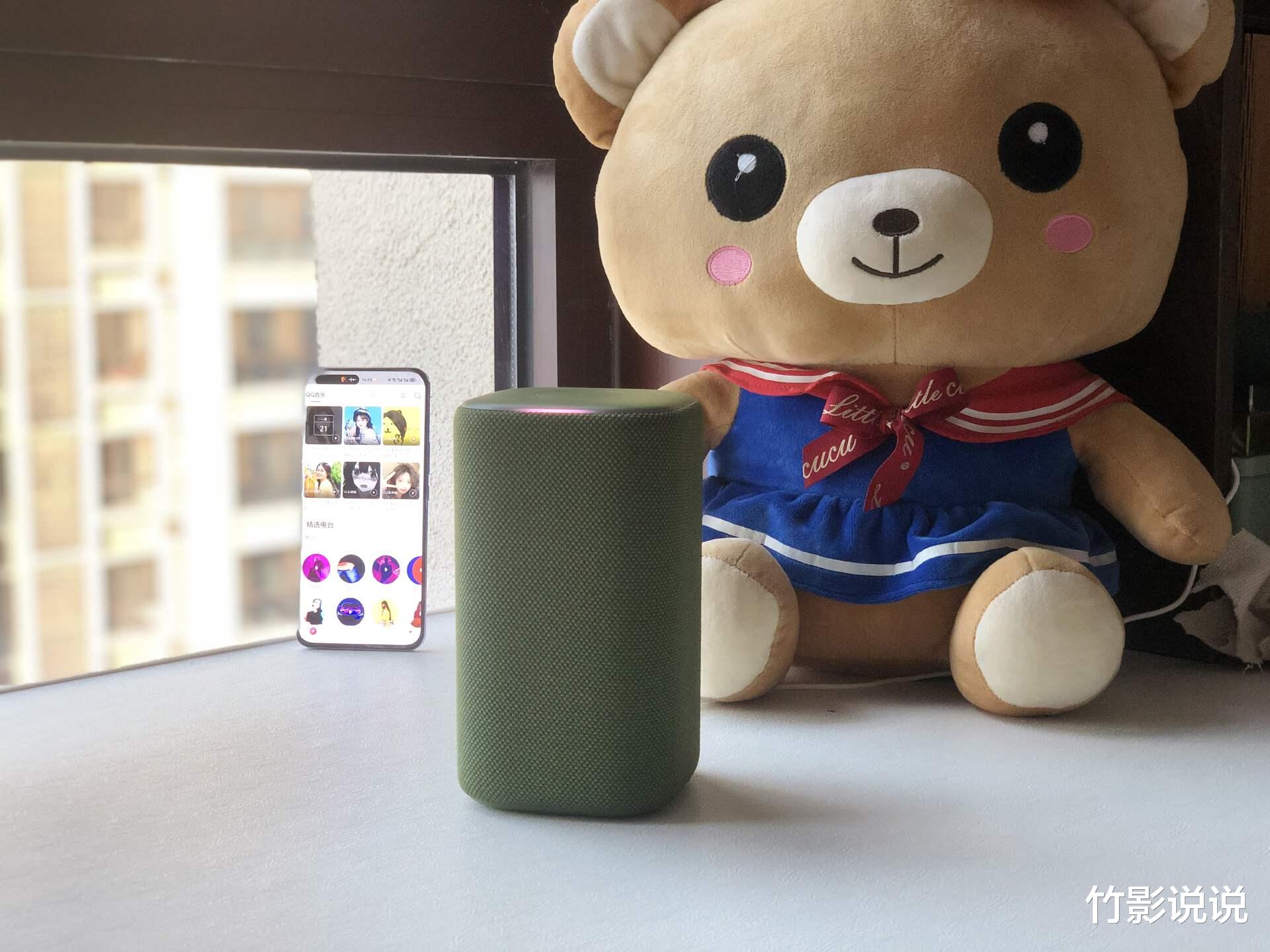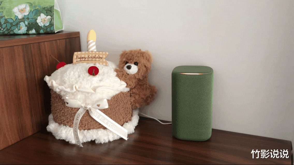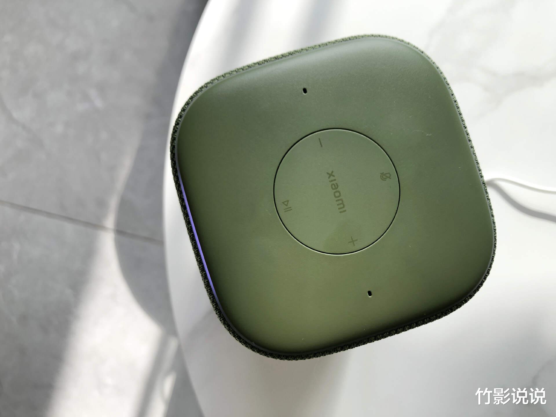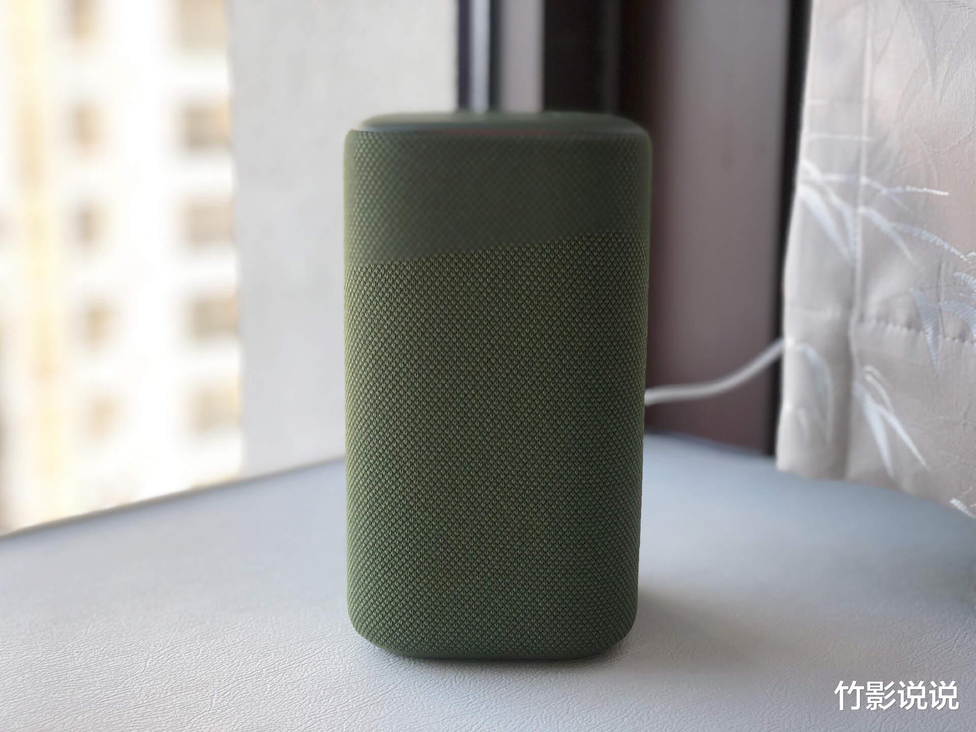作为一款需要全天候陪伴的家庭设备,颜值与家居环境的融合度,往往是很多人的第一考量。小米智能音箱采用的经典柱形设计,边角经过弧度处理,整体圆润表面覆盖有大面积针织网布,柔软透气的同时更加便于擦拭清理,我选择的是松绿配色,低调沉稳又超级耐看,能无缝融入各种装修风格的居家环境。