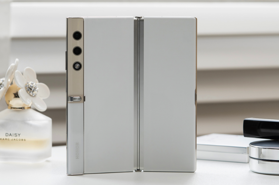 作为一款折叠屏手机,荣耀V Purse十分的轻薄舒适,整机的重量仅214g,展开时的厚度仅4.3mm,这已经比大部分主流手机还要轻薄了。由于升级了荣耀蝶翼铰链,加之柔顺阻尼技术,每一次开合都格外的丝滑。在摄影方面,荣耀V Purse搭载了5000万+1200万+800万旗舰三摄,通过后置镜头搭配外屏幕,能够进行轻松的自拍,这比内折叠屏手机要方便多了。