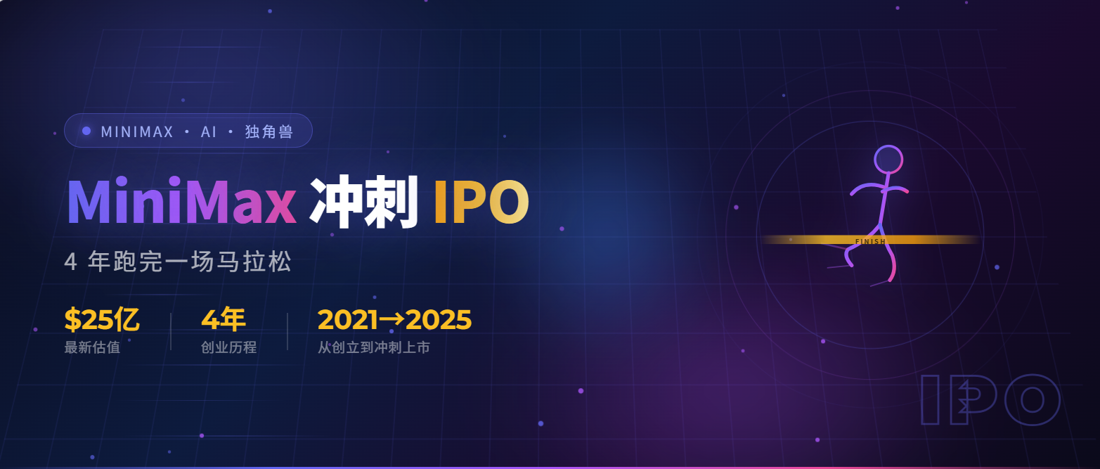 国产大模型公司 MiniMax(稀宇科技)已通过港交所聆讯,计划于 2026 年 1 月挂牌上市。从 2022 年成立至今不过四年,这个速度在 AI 行业里算是罕见的速度。