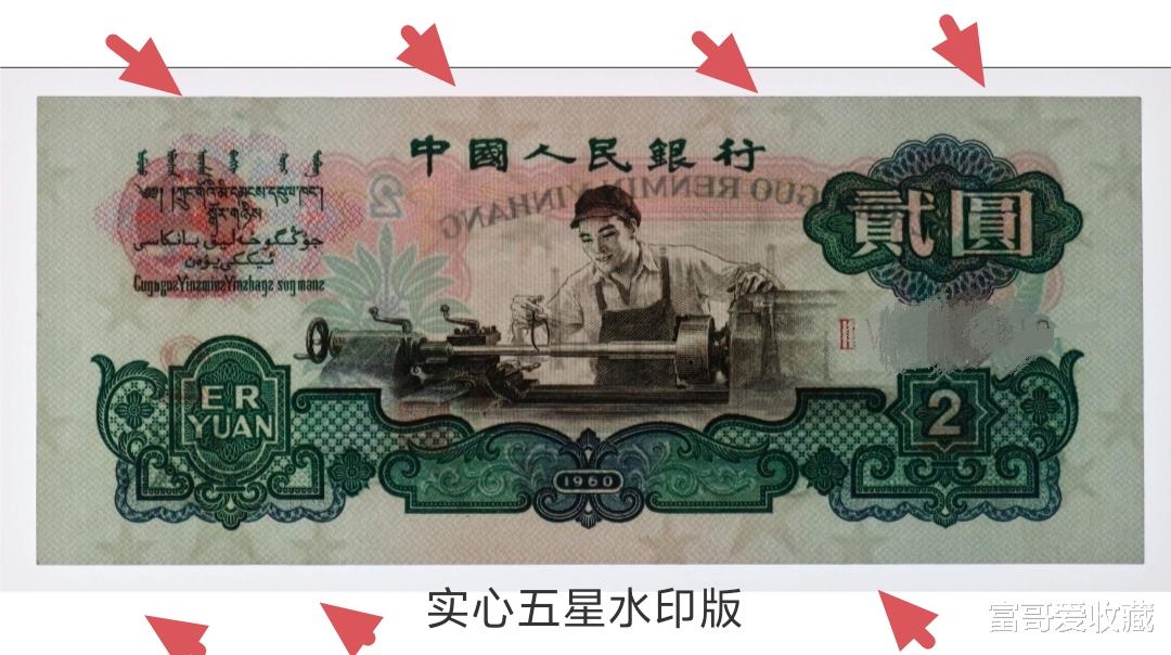 说到这种版别,对于新手朋友而言,可能并不了解。这个根据纸币的不同水印,来进行划分,有“五星水印版”和“古币水印版”两种。