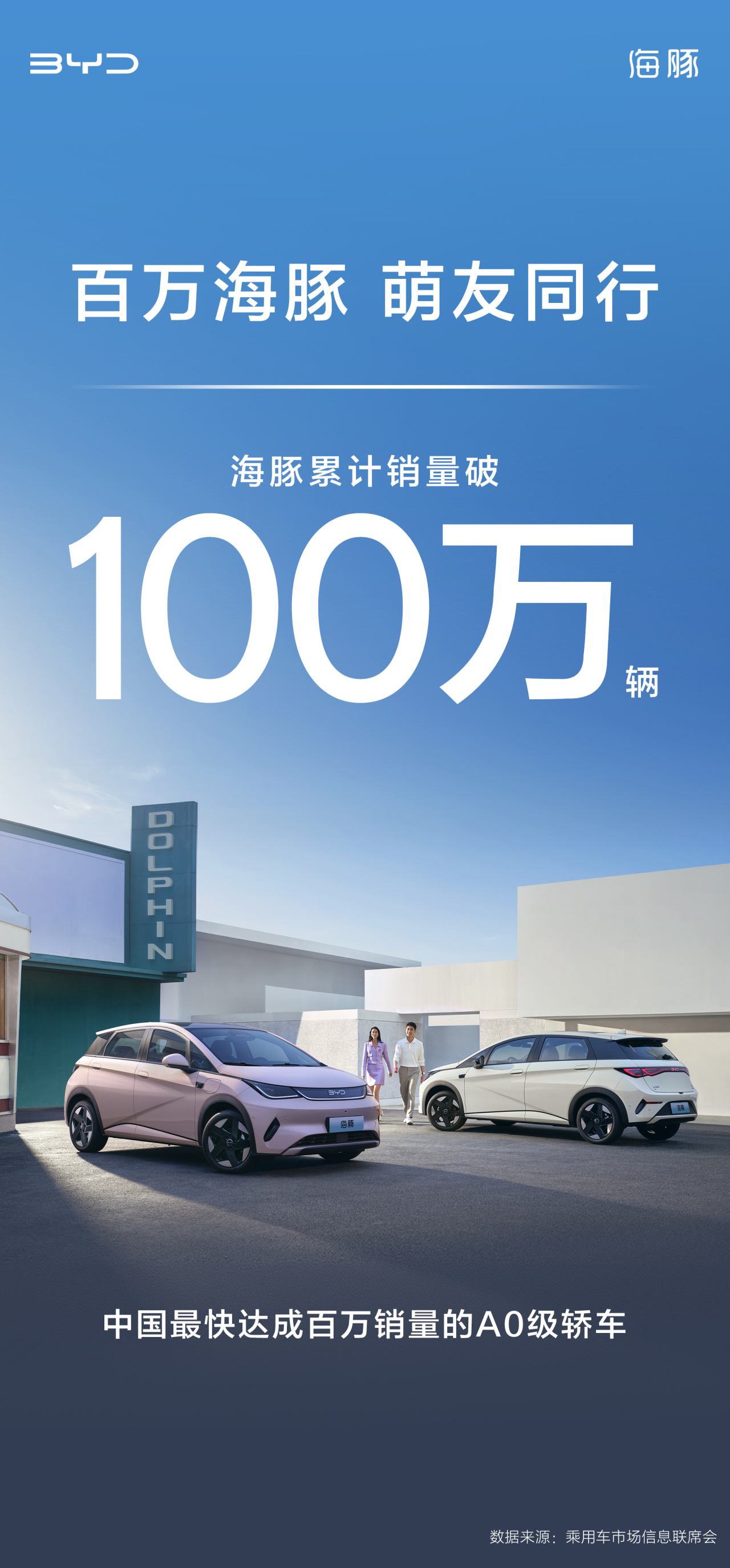 当比亚迪海豚的第100万辆整车缓缓驶下生产线,这枚A0级市场的“现象级爆款”,已悄然写下了中国汽车工业史上浓墨重彩的一笔:它不仅成为海洋网第三款销量突破百万的车型,更以“最快突破百万销量A0级轿车”的身份,重新定义了该细分市场的价值逻辑。