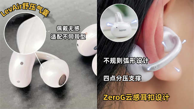 南卡ClipSuper2在佩戴体验上可以说是做到了耳夹式耳机的新高度。耳机固定部位搭载LevAir零压气囊设计,可以根据佩戴时的压力自动调整形态,有效分散重量。单耳重量只有4.8g,就算长时间戴着,耳朵也不会有明显的压迫感,舒适度很高。耳夹部分采用ZeroG云感耳扣结构,通过不对称的弧形设计,形成四点分压支撑,重量分配更均匀,佩戴也更稳固。就算是跑步或者大幅度甩头,耳机也能牢牢贴在耳廓上,不会移位也不会掉落。连接桥部分使用航空钛合金骨架搭配高分子记忆材料,拥有出色的自适应弯曲能力,实测经过上万次弯折依然完好,真正把舒适、稳固和耐用三者做到了完美平衡。