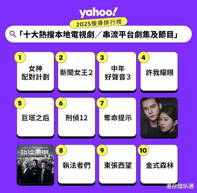 无独有偶,雅虎早前也发布了香港2025年度“十大热搜本地电视剧及节目”,TVB占据9席,《女神配对计划》、《新闻女王2》、《中年好声音3》还占满三甲。ViuTV和HOYTV仍然颗粒无收。