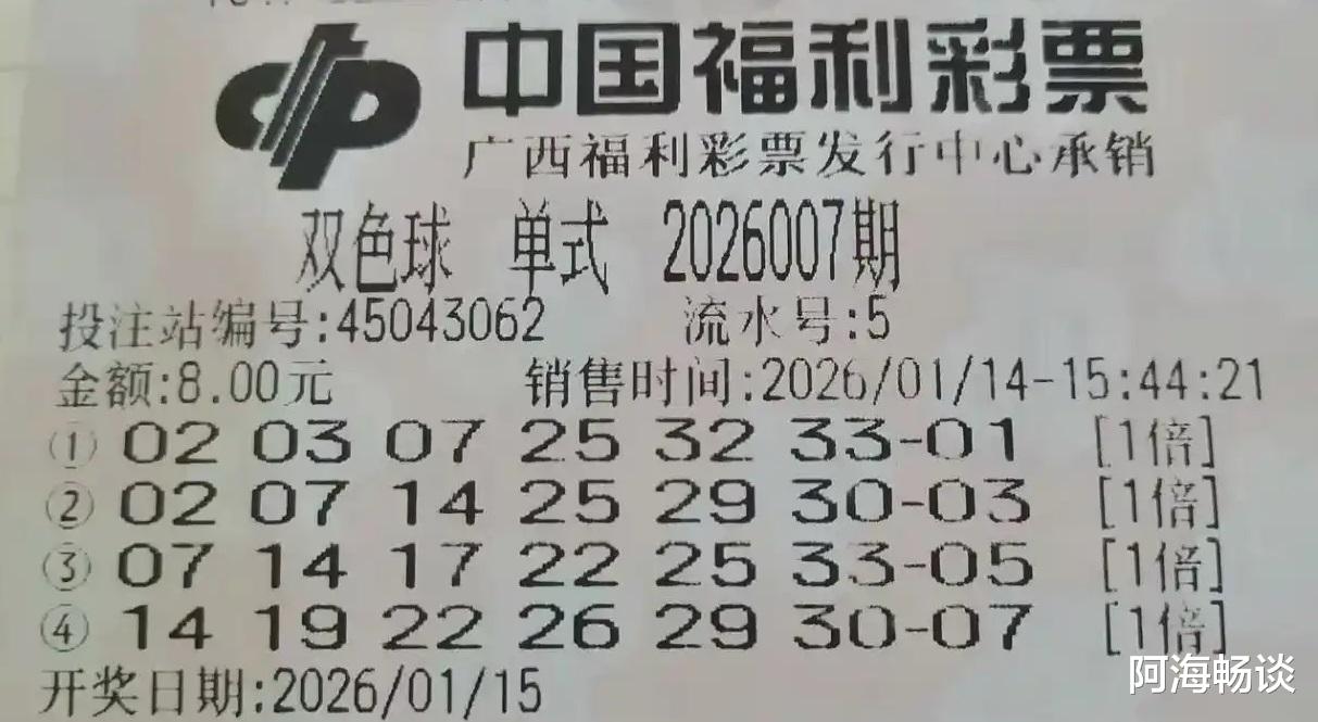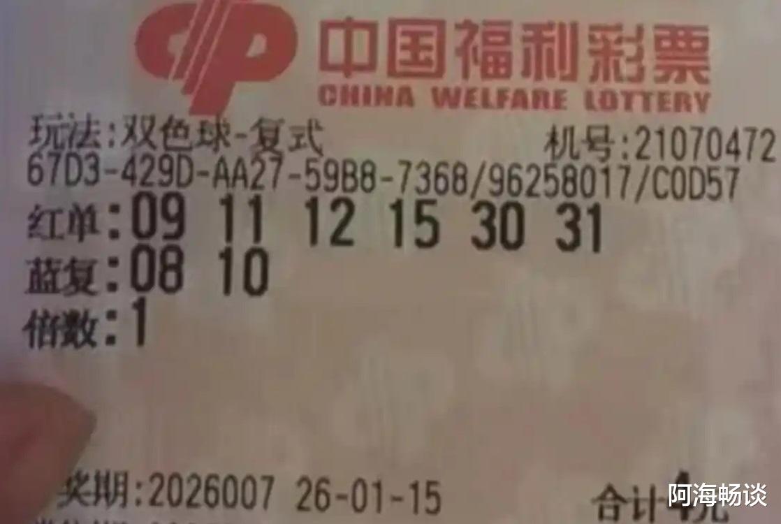 各位朋友大家好!今天是2026年1月15日,农历十一月廿七,星期四。今晚双色球第26007期即将开奖,许多朋友已提前晒出了本期选择的票面,各式组合,精彩纷呈!回顾上期(26006期)开奖情况,全国共开出2注一等奖,单注奖金达1000万元,均由山东的朋友揽获。同期二等奖147注,单注奖金178,496元。目前,第26007期的晒票已整理完毕,接下来与大家一起分享。在欣赏之余,也温馨提示大家,理性对待,量力而行,享受过程,保持平和心态。