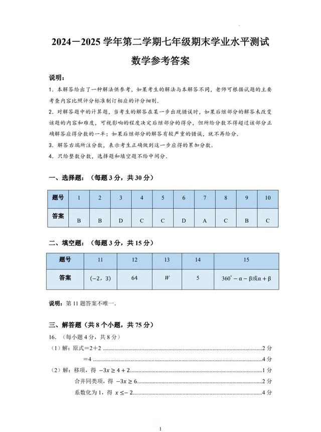 濮阳市2024—2025学年第二学期期末质量监测试卷七年级数学