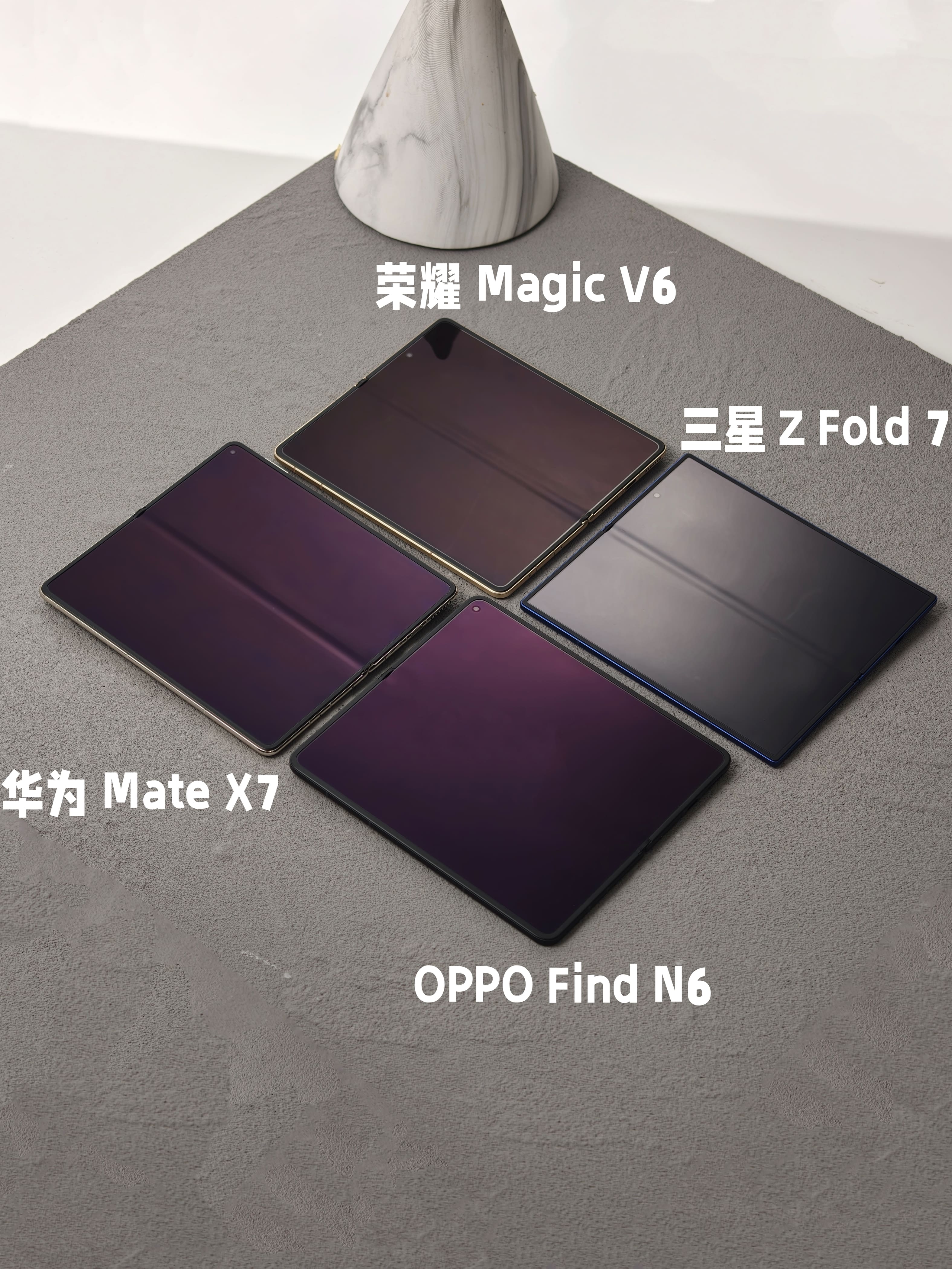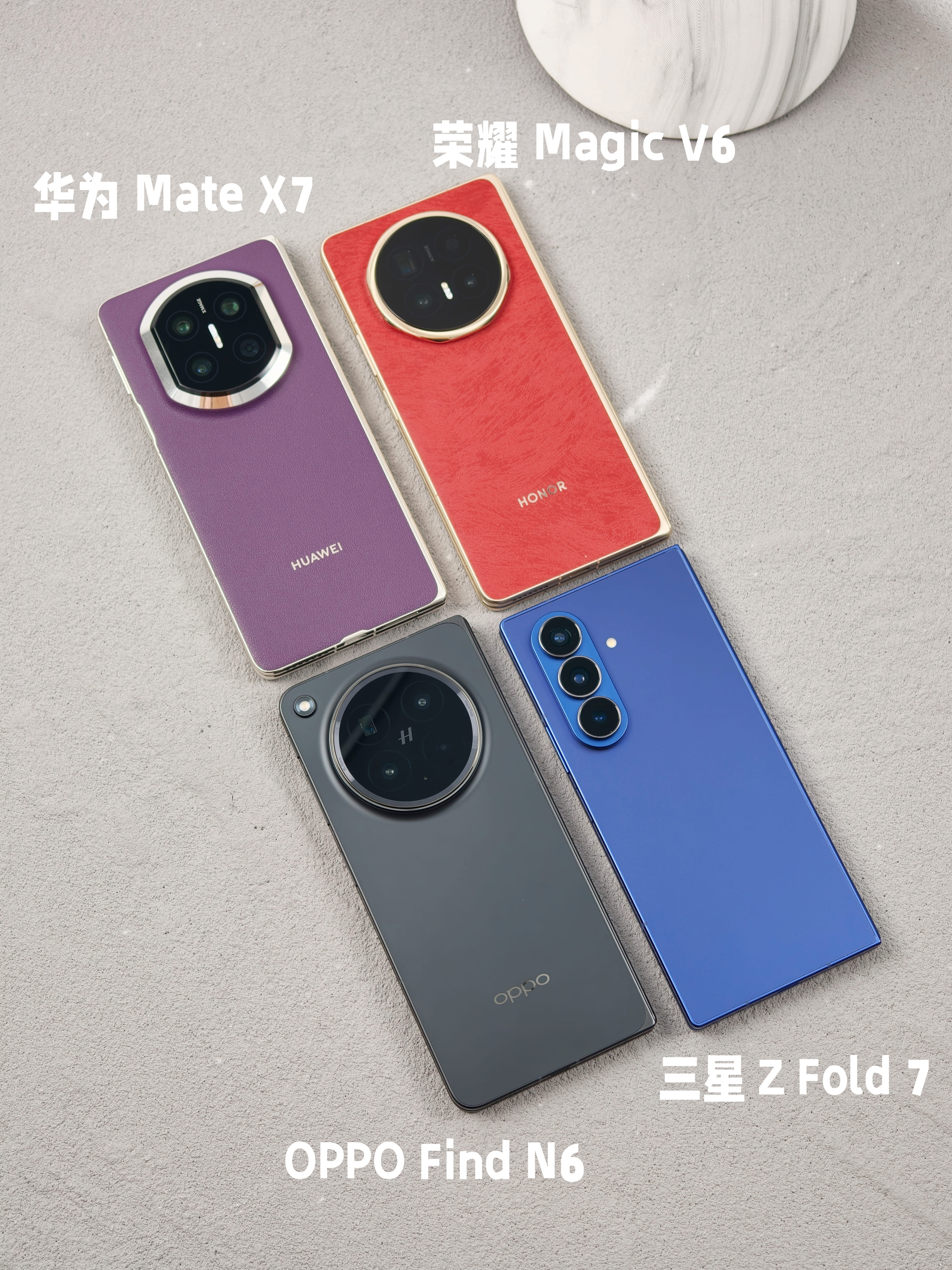 今年四款热门大折叠屏 —— 荣耀 Magic V6、三星 Z Fold7、华为 Mate X7、OPPO Find N6,这次抛开复杂的参数,不聊看不懂的参数,只说普通人用下来的感受,帮你避坑。