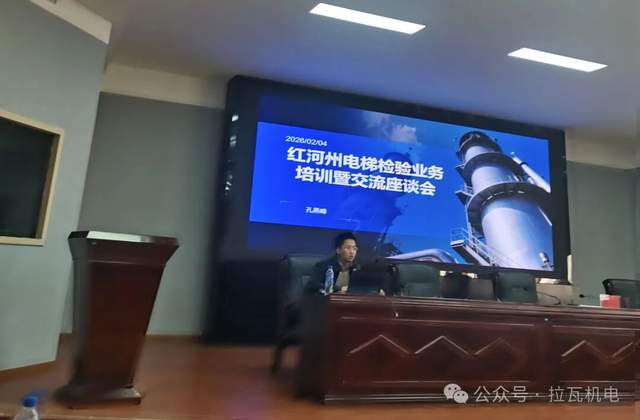 2026年2月4日,云南拉瓦机电设备有限公司(以下简称“拉瓦机电”)组织核心技术骨干赴行业专项培训现场,全程参与电梯检验业务培训暨交流座谈会。此次活动由红河州检验检测院主办,聚焦电梯使用单位和安装维护单位参加。