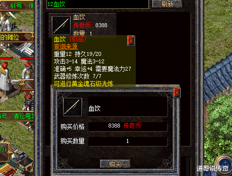 第四,魔12运4血饮(8388)血饮是法师的热门神兵,从一开始的大几千到如今三位数即可拿下,足以见得其产出数量开始越来越多了。当然了,升级过的血饮价值肯定很高,如上图所示,这把血饮升级了7点魔法属性上限,可惜只有4点幸运值,摆摊8388也不低了,如果是运7甚至是运8的话那必须要以万为单位了。