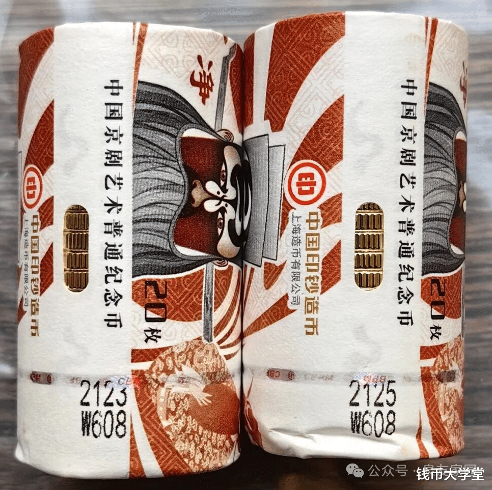 和其他纪念币卷币不同,京剧系列卷纸上都印有两排字符。第一排数字是生产时间,第二排据说是生产的流水线编码。
