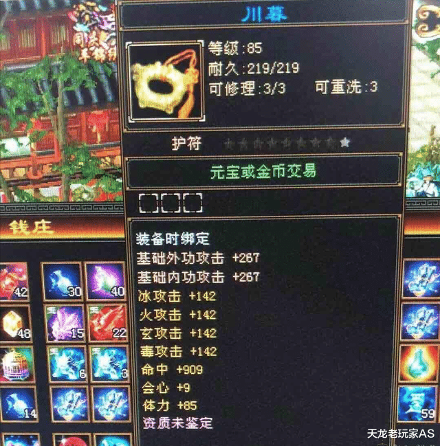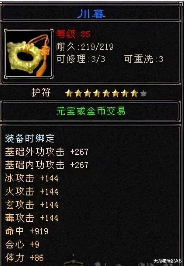 第一个是来自【天下第一】服务器的四属性144命会体极品85级川暮,售价1万元: