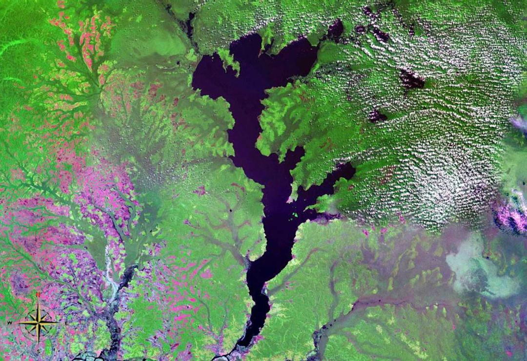 在这项新发表的研究中,研究人员再次将研究重点放在了因植物碎屑渗滤而变黑的水体:马伊恩东贝湖(Lac Mai Ndombe)及其邻近的图姆巴湖(Lac Tumba),它们的面积分别是 2,250 平方公里和 740 平方公里。