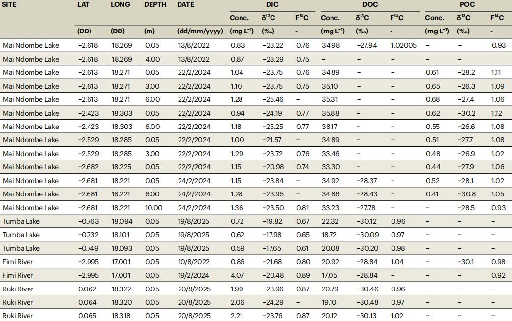 如果与此前公布的二氧化碳排放通量数据结合,即便不计入沿河输送并在下游释放的部分,仅马伊恩东贝湖每年向大气释放的古老碳量保守估计就高达约 15 万吨。
