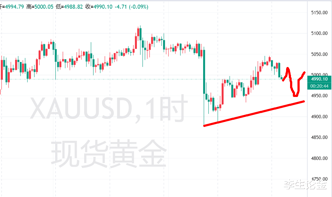 今天金价早上反弹后走弱,下面强支撑在4950美元,防守区域在4880美元,上面强阻力在5050美元,其次阻力是今天早上反弹高点5030美元,方向上日内以高空为主。