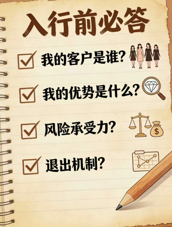 我的退出机制是什么?这不是消极思考,而是理性规划。如果经营不顺利,是转型、转让、还是回去上班?提前想好退路,才能更从容地前进。