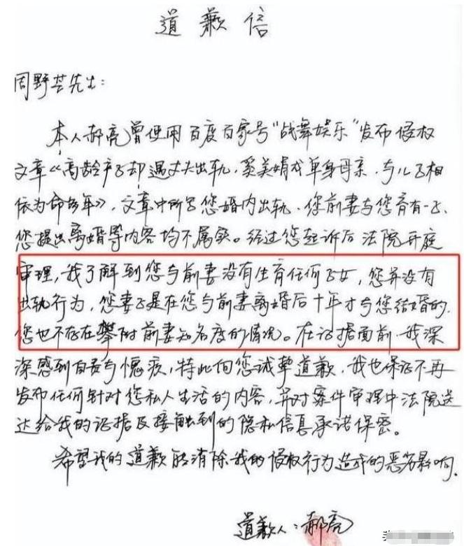 最终,这场官司周野芒胜诉,那个博主公开手写了道歉信,信里的每一句话都推翻了流传30年的“真相”。