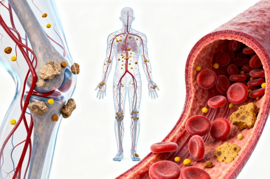 系统性损害:长期高尿酸会悄无声息地损害多个器官,与心血管疾病、代谢性疾病及神经系统疾病的发生和发展密切相关。
