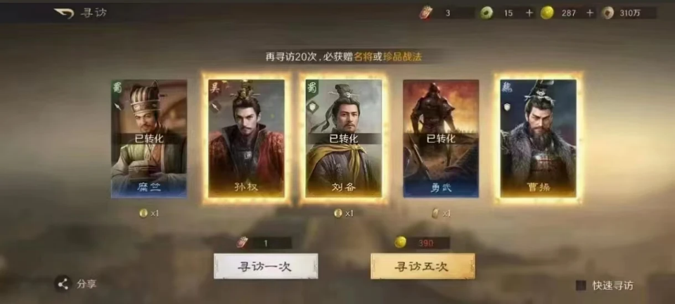 游戏在降低养成压力方面堪称业界良心。与其他SLG需要消耗同名卡解锁战法不同,《三国:谋定天下》仅需铜币就能解锁所有战法槽和韬略,彻底告别"卡战法"的烦恼。抽卡系统更是诚意满满,8%的橙卡概率远高于行业平均水平,20抽保底机制让你不再为抽不到核心武将发愁。登录前七天免费赠送的125次抽卡券和2480黄金,足够让你组建起多支强力队伍。