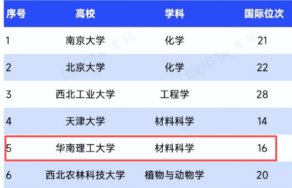 华南理工大学之所以能够成为全国范围内所有开设该专业院校中唯一上榜的高校,也并非偶然,作为“四大工学院”之一,华南理工大学本就在工科领域有着深厚的学术积淀。不仅如此,该专业所以依托的材料科学学科成功入选了ESI前万分之一学科,位列全球第16,处于全球顶尖水平。